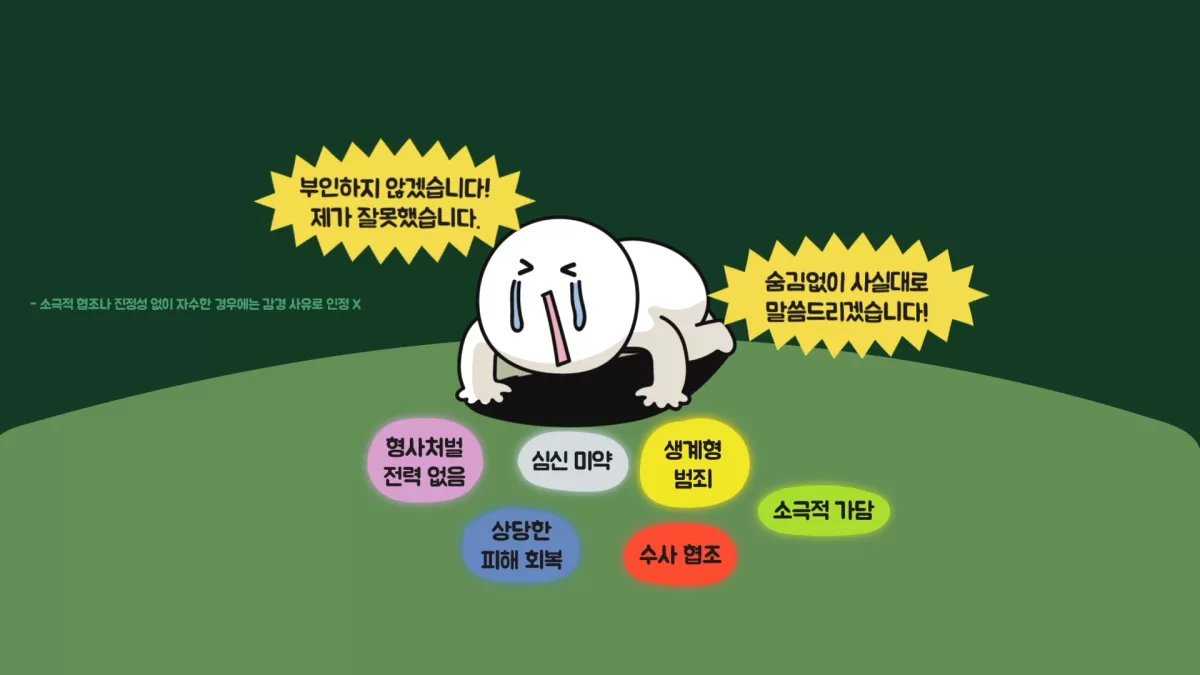 이와 관련해 대법원 양형위원회에서 형을 낮출 때 판단하는 여러 기준이 있는데, 모든 범죄 행위에 ‘진지한 반성’이라는 게 포함됩니다.