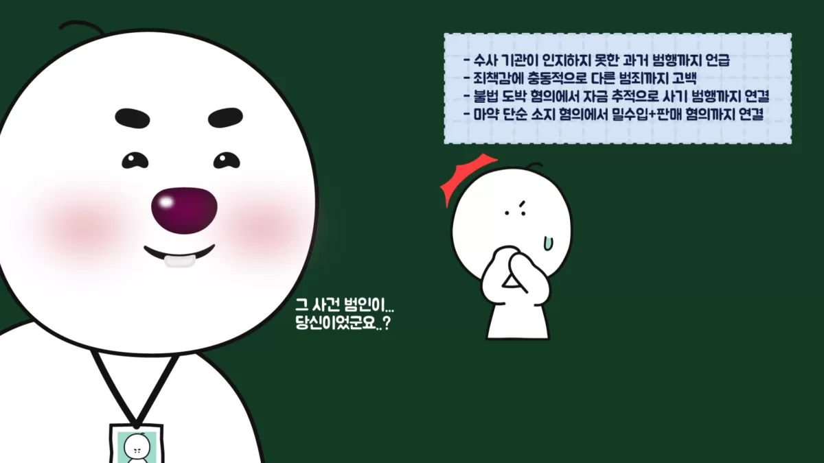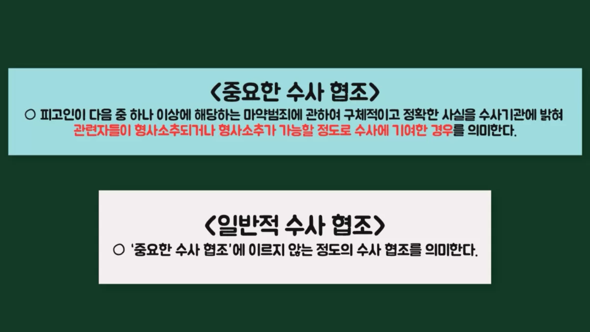 대부분의 범죄는 지금까지 살펴본 것처럼 자기 자신에 대한 것만이 문제가 됩니다. 그런데 마약이나 보이스피싱 같은 일부 특수한 범죄는 다른 범죄자에 대한 수사 협조가 형을 낮출 때 중요한 요소가 됩니다.