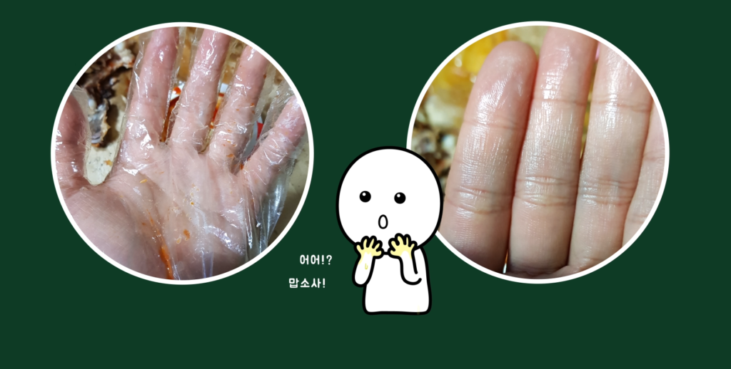 저는 젓가락을 이용해서 먹는 편이라 몰랐습니다. 질문을 받고 나서 알게 됐고, 최근 프라이드 치킨을 먹을 일이 있어서 비닐장갑을 끼고 먹어봤습니다. 놀랍게도 비닐장갑을 끼고 먹었음에도 손에는 기름이 묻어 있었습니다.
