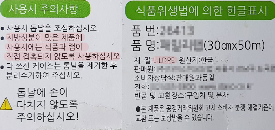 여기까지 주제에 관한 원인은 해결했는데, 저밀도 폴리에틸렌으로 만든 랩의 포장 용기 겉면에 사용 시 주의사항을 보면 지방(기름) 성분이 많은 제품에는 직접 접촉을 주의하라는 문구가 있습니다. 용해 때문이라고 생각하게 만든 문구로 왜 접촉을 주의하라는 걸까요?