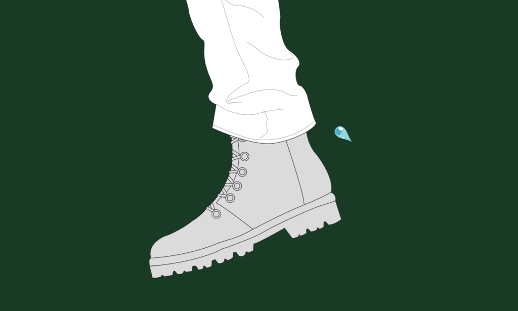 이때 물방울이 떨어져 나가는 방향은 바닥으로부터 약 75도였습니다. 떨어지는 물방울은 위로 올라갔다가 스윙 구간이 끝나고 땅에 내딛으려는 발 앞부분을 향해 떨어졌고, 연구팀은 이 과정으로 신발의 앞부분이 젖는 것을 확인합니다.