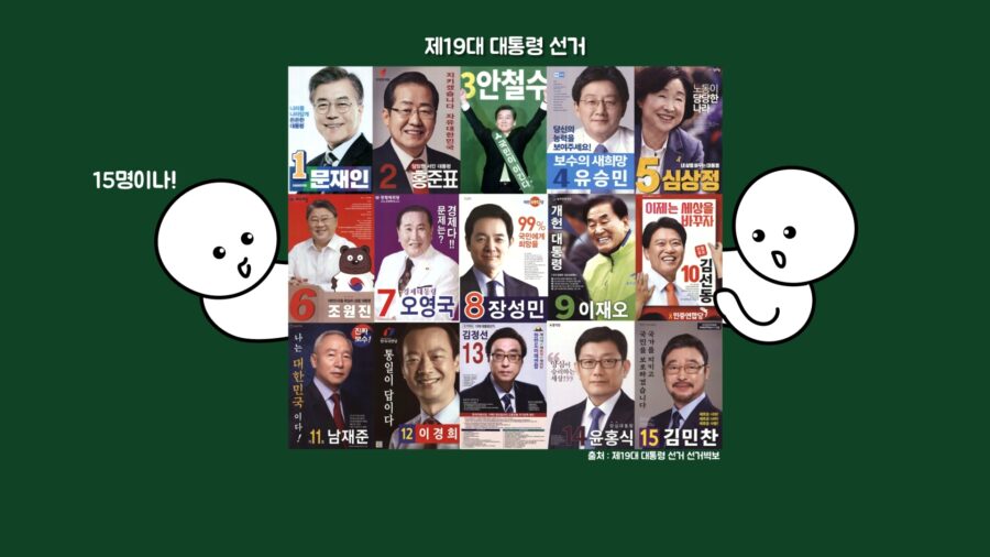 우리나라는 4~5년 주기로 대통령 선거와 국회의원 선거, 전국동시지방선거 등을 치르고 있습니다. 이 선거들로 대통령과 국회의원, 지방자치단체장 및 지방의회의원 등을 선출하는데, 이변이 없는 한 예상한 범위 내에서 당선자가 나옵니다. 이와 관련해 2017년에 치러진 제19대 대통령 선거(이하 ‘대선’)를 살펴보면 총 15명이 대선 후보로 등록했습니다.