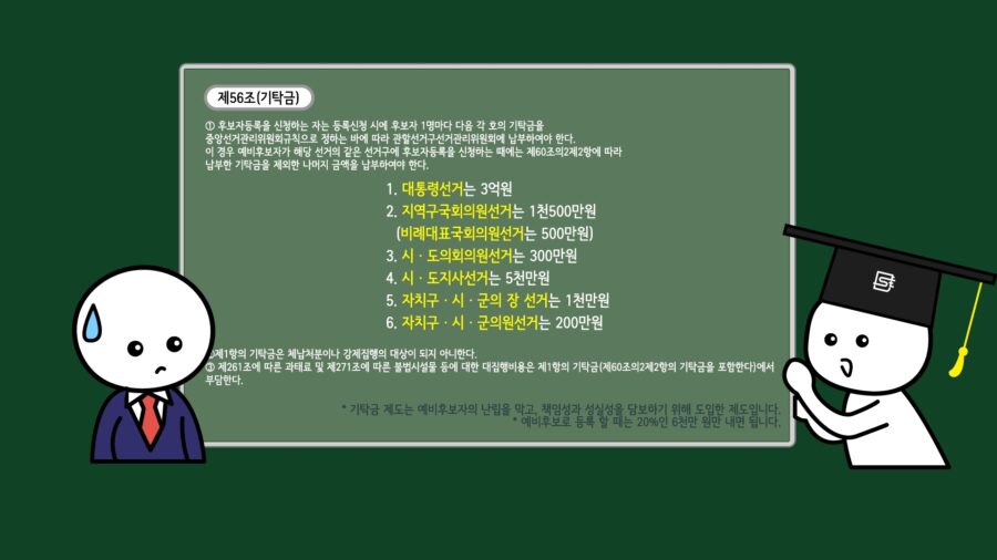 물론 낮은 지지율로 시작해서 당선될 수도 있겠으나 냉정하게 봤을 때 불가능에 가깝습니다. 특히 대통령 선거는 국민 다수의 지지를 받아야 당선될 수 있으므로 다른 선거보다 당선되기가 더 어렵습니다. 어쨌든 출마하는 것은 본인의 자유입니다. 의문이 드는 이유는 당선되기도 어렵고, 대통령 선거에 출마할 때 기탁금으로 여러 선거 중에서도 가장 큰 금액인 3억 원을 내야 하기 때문입니다.
