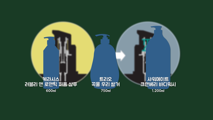 특히 페트병 제품에 금속재질의 뚜껑 등 부속품이 있으면 재생원료의 품질은 급격히 떨어집니다. 재활용 공정에서 분쇄된 금속 알갱이는 분류하기가 너무 어렵기 때문인데, 겉으로는 보이지 않아도 샴푸 등의 펌프에 주로 사용되는 금속 스프링도 주요 원인으로 드러났습니다. 이것 또한 순환이용성 평가 제도를 통해서 금속 스프링을 사용하지 않도록 개선 중입니다.