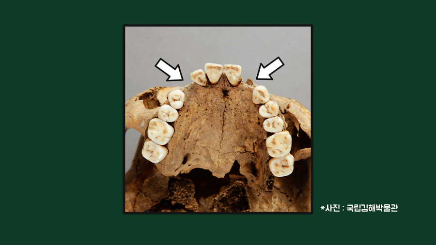 죽은 후에 발치하면 그 자리에 구멍이 존재하나 생전에 발치하면 구멍이 메워집니다. 이를 통해 생전에 발치했다는 것을 알 수 있고, 선천적으로 존재하지 않았거나 병을 앓았던 흔적들이 없는 것으로 보아 하나의 관습일 것으로 추정하고 있습니다.