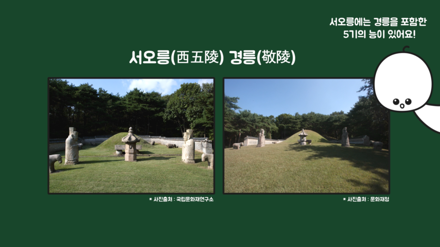 예를 들어서 서오릉(西五陵)의 경릉(敬陵)은 추존왕 덕종의 무덤인데, 조선왕릉 중 병풍석과 난간석, 무석인 등이 없는 왕릉으로 매우 간소하게 조성됐습니다. 이유가 뭘까요?