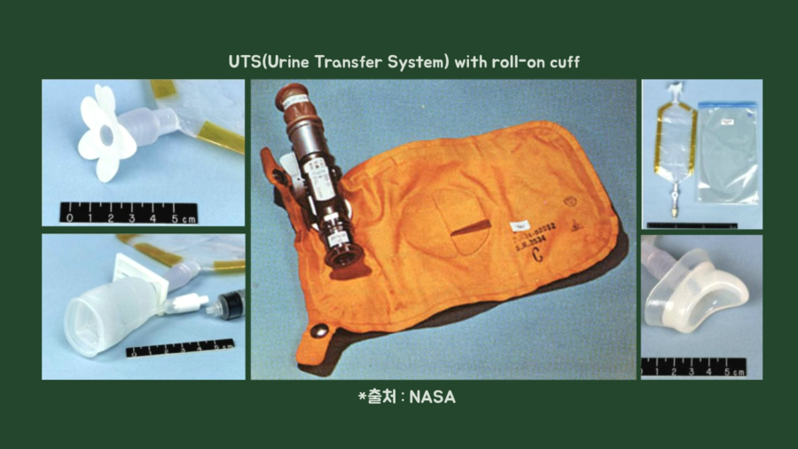 아폴로 계획(Apollo Program, 우주비행사를 달에 착륙시켰다가 지구로 안전하게 귀환시키는 미국의 계획) 때는 롤 온 커프(Roll on cuff)라는 라텍스로 만든 소변주머니를 준비해 상황에 대비했습니다.
