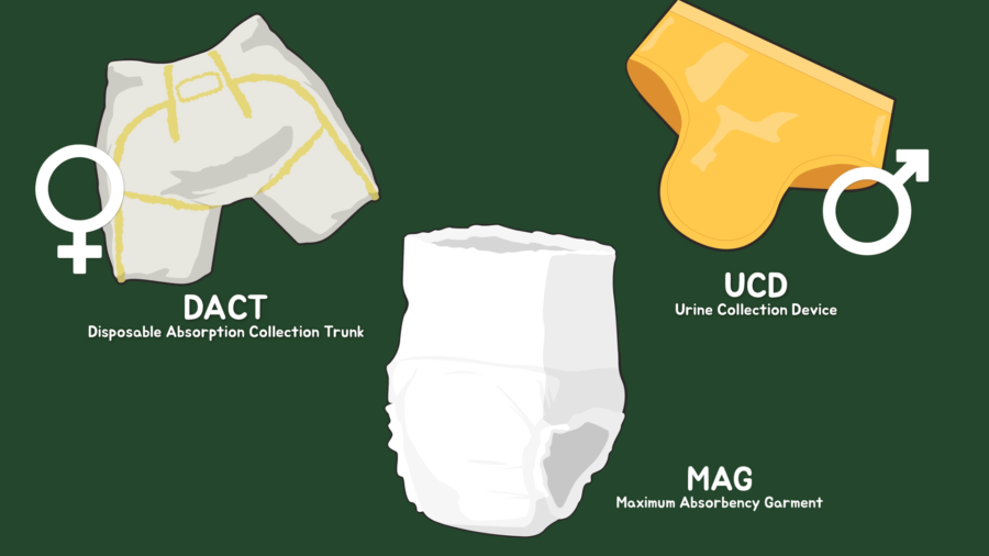 우주왕복선 시대가 도래한 이후에는 여성은 소변흡수트렁크(DACT, Disposable Absorption Collection Trunk)를, 남성은 소변수거장치(UCD, Urine Collection Device)를 사용했고, 현재는 성별 구분 없이 최대흡수내의(MAG, Maximum Absorbency Garment)라는 것을 착용합니다.