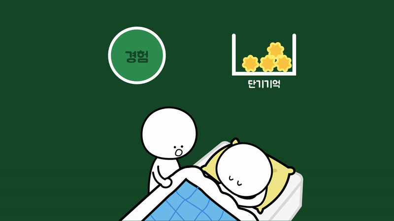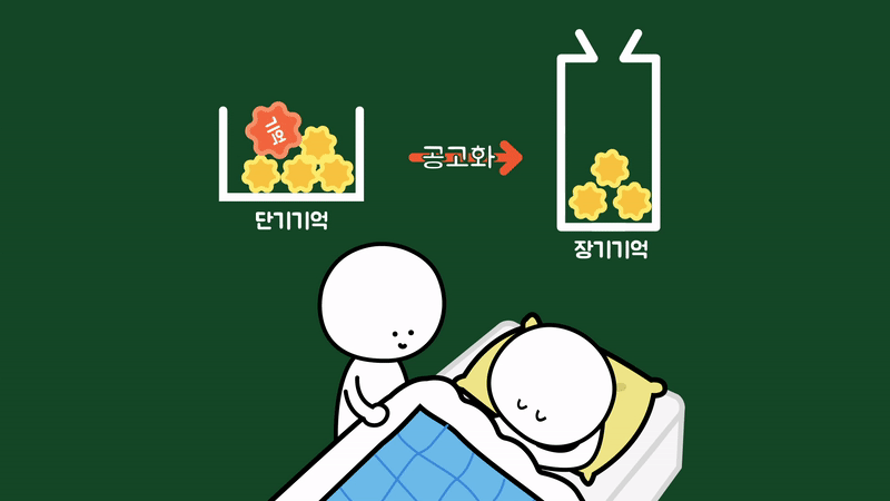 이와 관련해 잠자면 감각이 차단되어 부호화 과정이 일어나지 않으므로 잠들고 난 다음에 일어난 일들은 기억할 수 없습니다. 그리고 자는 동안에는 공고화 과정도 일어나지 않습니다.