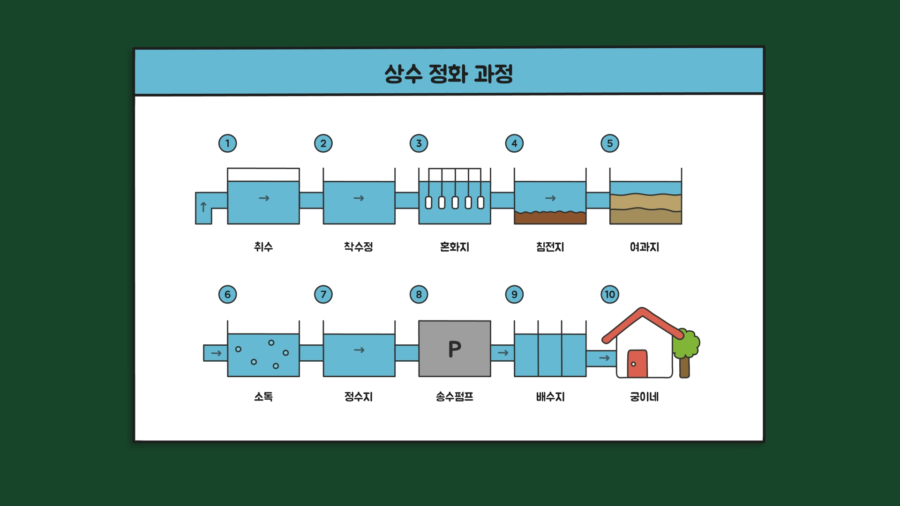 꽤 복잡한 과정을 거치는데, 우리나라 수돗물은 세계보건기구(WHO)가 권장하는 검사항목 기준인 164가지를 넘어서 약 300가지 항목에 대한 수질검사를 진행하고 있으니 믿고 사용해도 좋습니다.