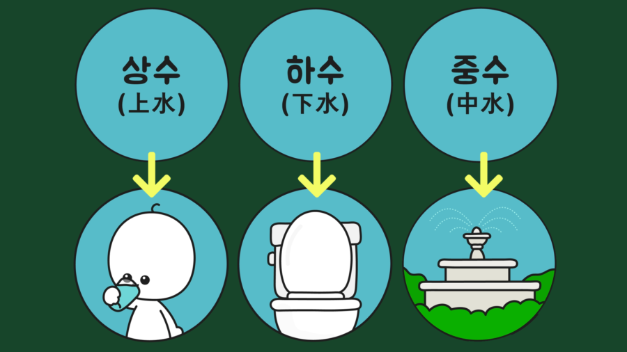 주제의 의문을 해결하기 위해서는 상수, 하수, 중수에 관해서 알아야 합니다. 먼저 상수(上水)는 마시기에 적합한 양질의 물이고, 하수(下水)는 사용하고 난 후의 오염된 물입니다. 그리고 중수(中水)는 한 번 사용한 물을 개별적으로 처리한 후 재사용하는 물을 의미합니다.