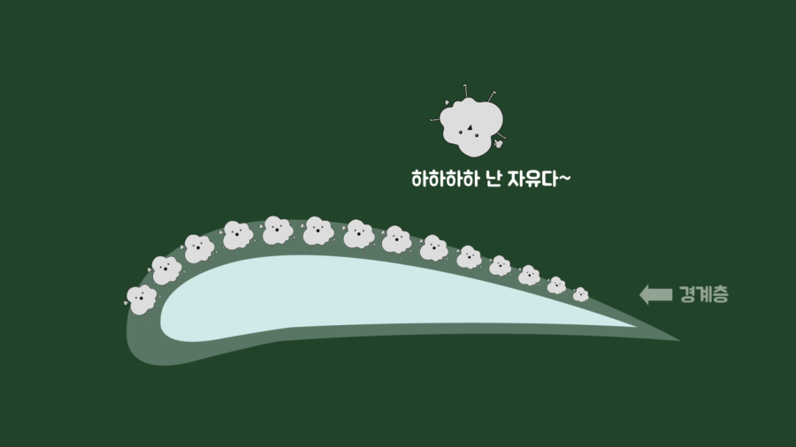 경계층의 개념부터 설명해보면 공기는 변형이 쉽고 흐르는 성질을 가진 유체입니다. 모든 유체는 점성을 가지고 있으므로 유체가 다른 물체와 마찰하면 점성이 생깁니다. 그러니까 고체 표면(≒다른 물체)을 흐르는 공기(≒유체)는 고체 표면과의 마찰로 점성이 생기고, 점성에 의해서 속도가 감소합니다.