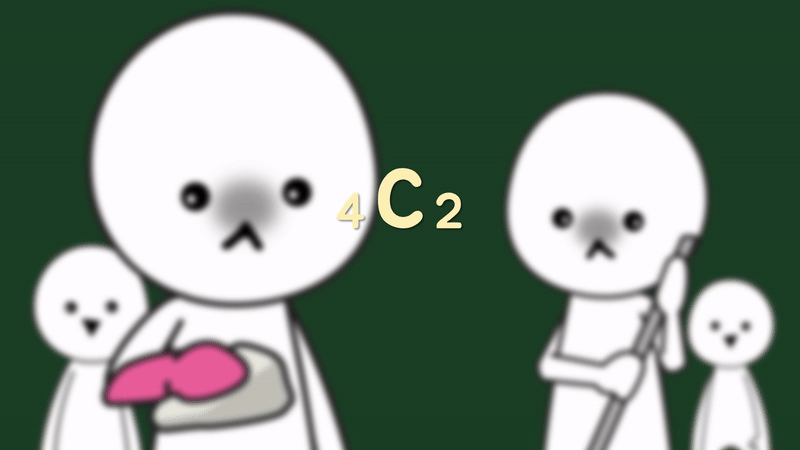 공식만 보면 헷갈릴 수 있으니 4개의 대상 중 2개의 대상을 뽑는 상황에 적용해보면 ₄C₂ 라고 할 수 있고, 아래와 같이 풀 수 있습니다.