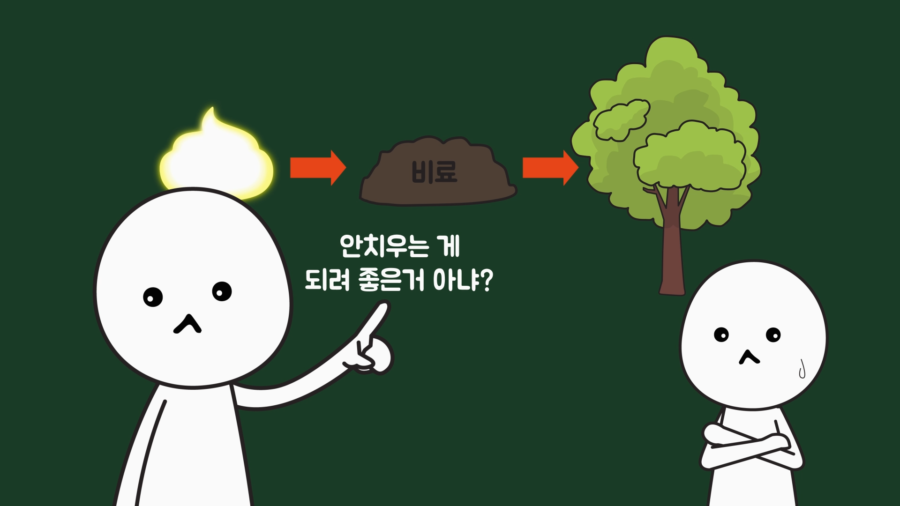 여기까지 주제의 의문은 해결했는데, 앞서 강아지가 똥을 쌌을 때 처리하지 않고 가는 상황과 관련해 똥은 ‘비료’로 쓸 수 있기 때문에 문제될 것이 없어서 그렇게 한다는 주장이 있습니다. 실제 초식동물인 소의 분뇨는 비료로 사용하고 있기에 그럴 듯한 주장으로 보입니다.