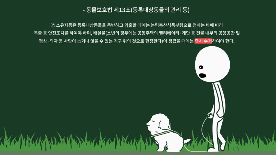 법무법인 명재의 김연수 변호사님의 말씀에 따르면 똥을 수거했다면 문제될 것이 없고, 남의 집 종량제 봉투나 공용 쓰레기통에 버리는 상황과 관련해서는 법이 관여·개입하지 않는 윤리·도덕·양심의 영역이라고 합니다.