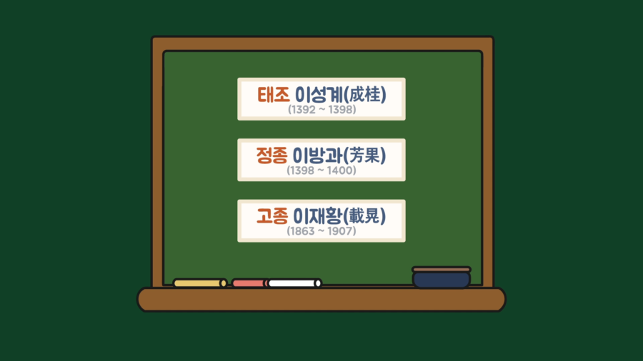 이에 따라 태종 이방원과 단종 이홍위를 제외한 모든 왕의 이름은 외자라고 봐야 하는데, 태조 이성계는 즉위 후 이름을 이단(李旦)으로 개명했고, 정종 이방과는 이경(李曔)으로, 고종 이재황은 이희(李㷩)로 개명했습니다.