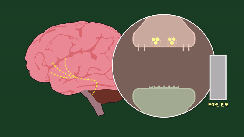주요 작용 기전은 신경전달물질인 도파민과 노르에피네프린, 세로토닌 등의 재흡수를 막은 뒤 뇌 도파민(DA)의 농도를 높여 보상회로에 아주 강한 자극이 가게 해 쾌락을 느끼게 해주는 일입니다.