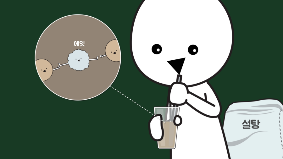 각설하고, 그렇다면 미숫가루를 탈 때 덩어리지지 않게 하려면 어떻게 해야 할까요? 믹서기를 이용해 소수성 상호작용으로 형성된 표면의 막을 빠르게 계속 부수는 방법이 있습니다. 아니면 설탕과 미숫가루를 미리 혼합하여 설탕의 거친 입자가 미숫가루 사이사이에 들어가 뭉치는 것을 방해해 덩어리지지 않도록 하는 방법이 있습니다.