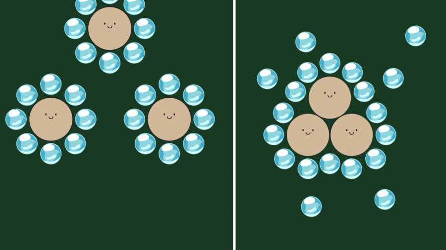 그림으로 보면 위와 같고, 물리적인 자극을 주어 소수성 상호작용으로 형성된 표면의 막을 부수면 물과 접촉한 소수성 물질끼리 다시 빠르게 뭉치면서 구형의 덩어리를 계속 만들어 냅니다.