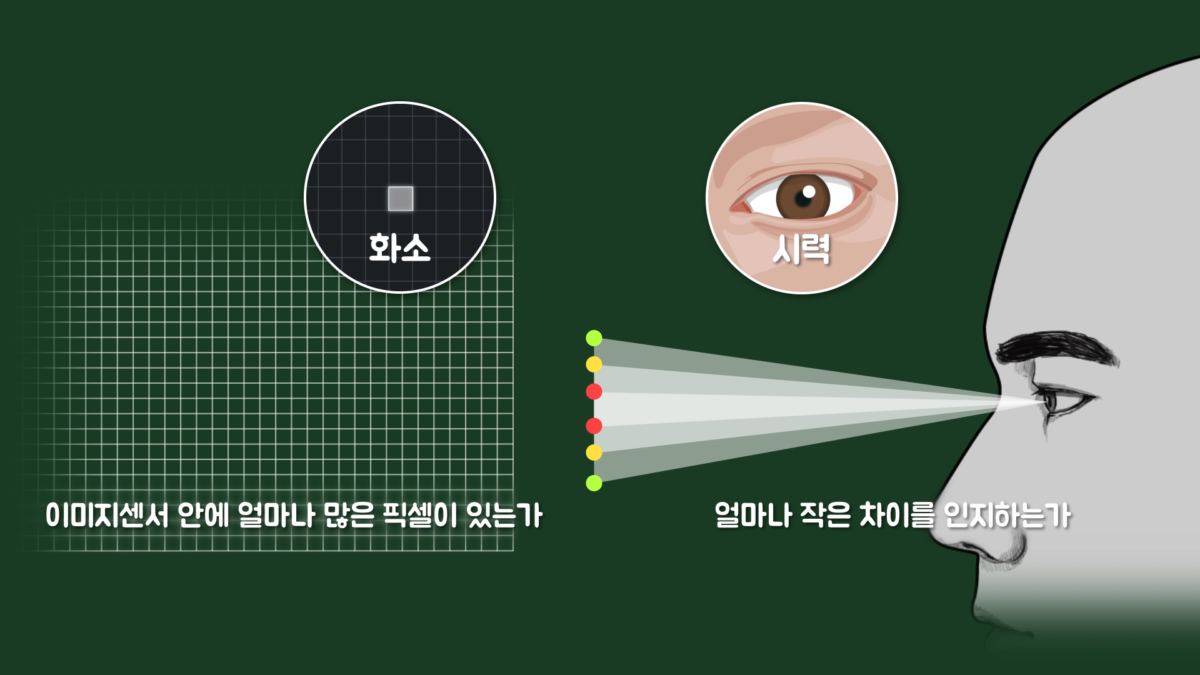 여기까지 화소의 개념은 이해했을 텐데, 그렇다면 사람 눈은 몇 화소일까요? 일단 사람 눈을 화소로 정의하는 것은 매우 어렵습니다. 왜냐하면, 사람 눈은 디지털 이미지에 사용되는 화소와 달리 분해능을 이용해 사물을 식별하기 때문입니다.