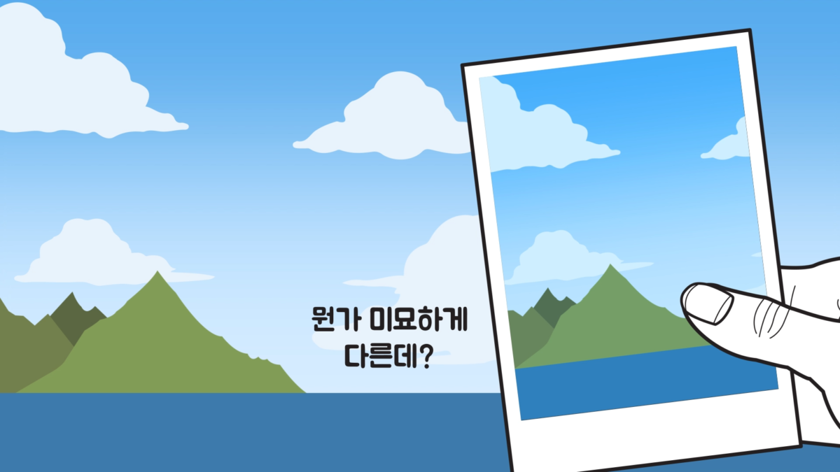 여기까지 주제의 질문에 대한 답을 구해봤고, 추가로 평소 사진을 찍을 때 눈으로 봤을 때와 다르다고 느낀 적이 있지 않으신가요? 이는 착각이 아니라 사람의 눈과 카메라가 인식하는 색의 값이 달라 발생한 현상입니다.