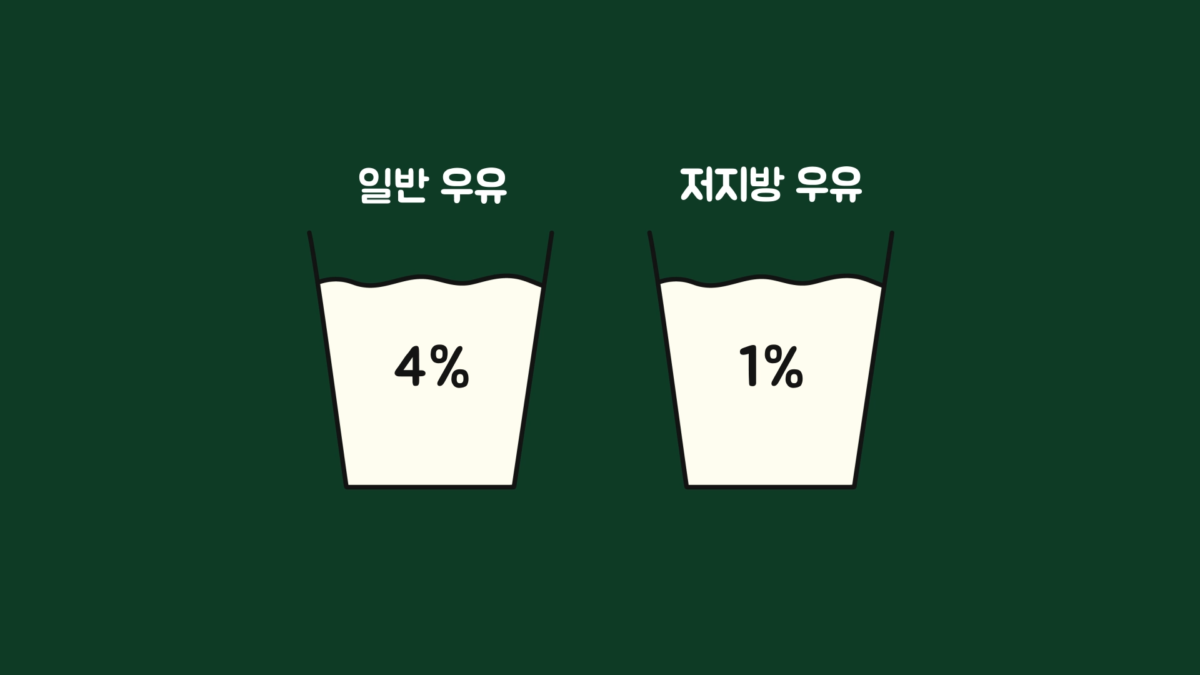 일반 우유에는 지방이 4%, 저지방 우유에는 지방이 1% 정도가 들어가도록 하고, 지방이 많으면 진한 맛이 납니다. 그런데 단순히 우유와 지방을 함께 둔다고 섞이는 게 아닙니다. 균질화 과정이 필요하고, 우유 속의 지방을 잘게 부수어서 골고루 분포하도록 해줍니다.