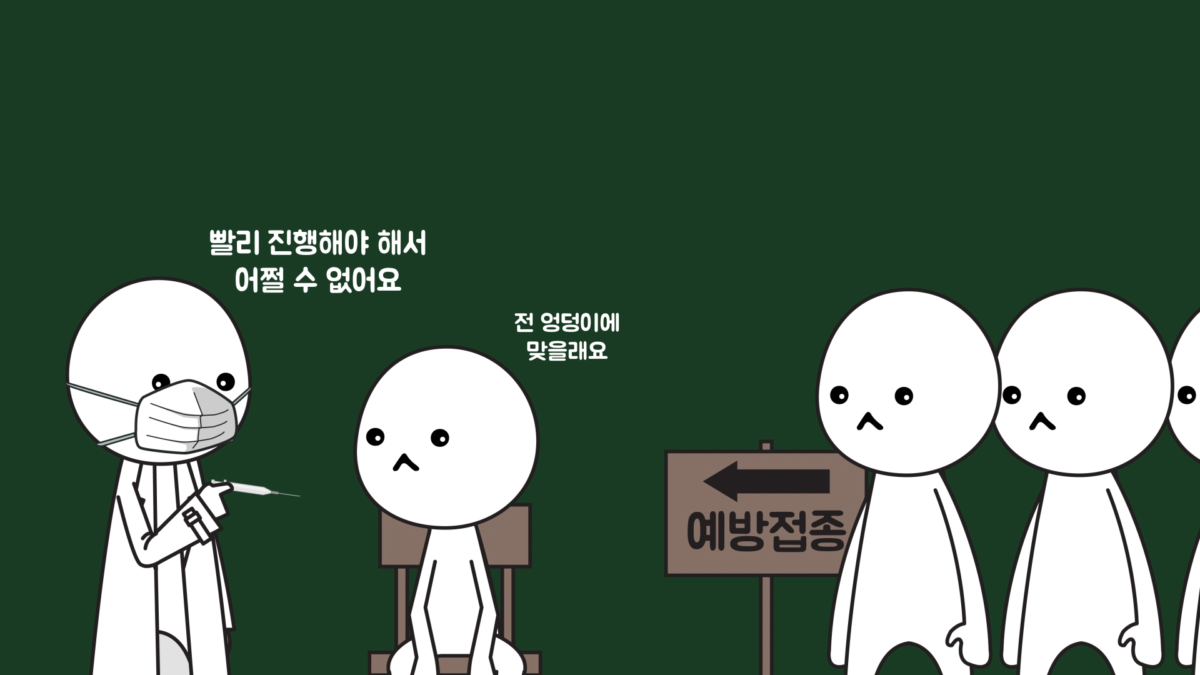 그래서 환자의 선호에 맞게 주사를 놓아주기도 하는데, 단체로 주사를 맞을 때는 빠른 진행을 위해 위팔 삼각근 부위에 놓습니다.
