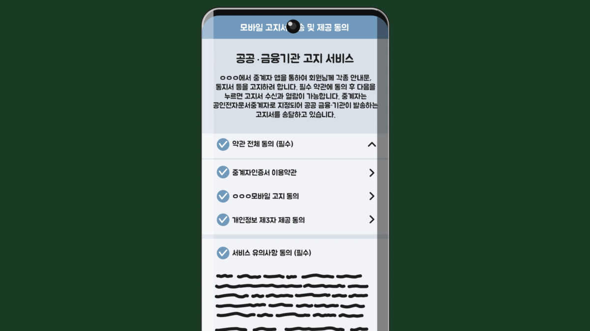 이와는 달리 모바일 전자고지는 안내문이나 고지서를, 사용자가 이용하는 공인전자문서중계자의 플랫폼을 통해 알아서 발송해줍니다.