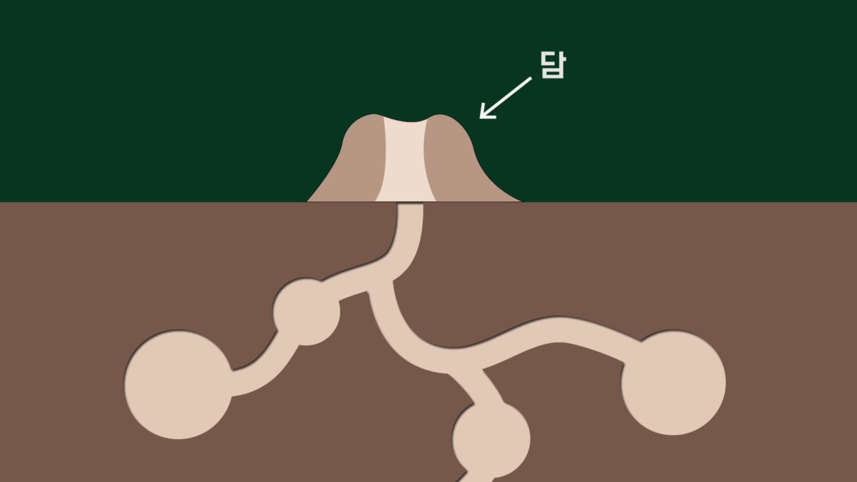 그런데 의문이 생깁니다. 앞서 개미집에는 들어가는 구멍이 존재했습니다. 즉, 문이 없어서 외부와 바로 연결된 상태입니다. 만약 비가 오면 저 구멍 안으로 빗물이 들어가게 될 텐데, 그러면 개미집은 물에 잠기지 않을까요?