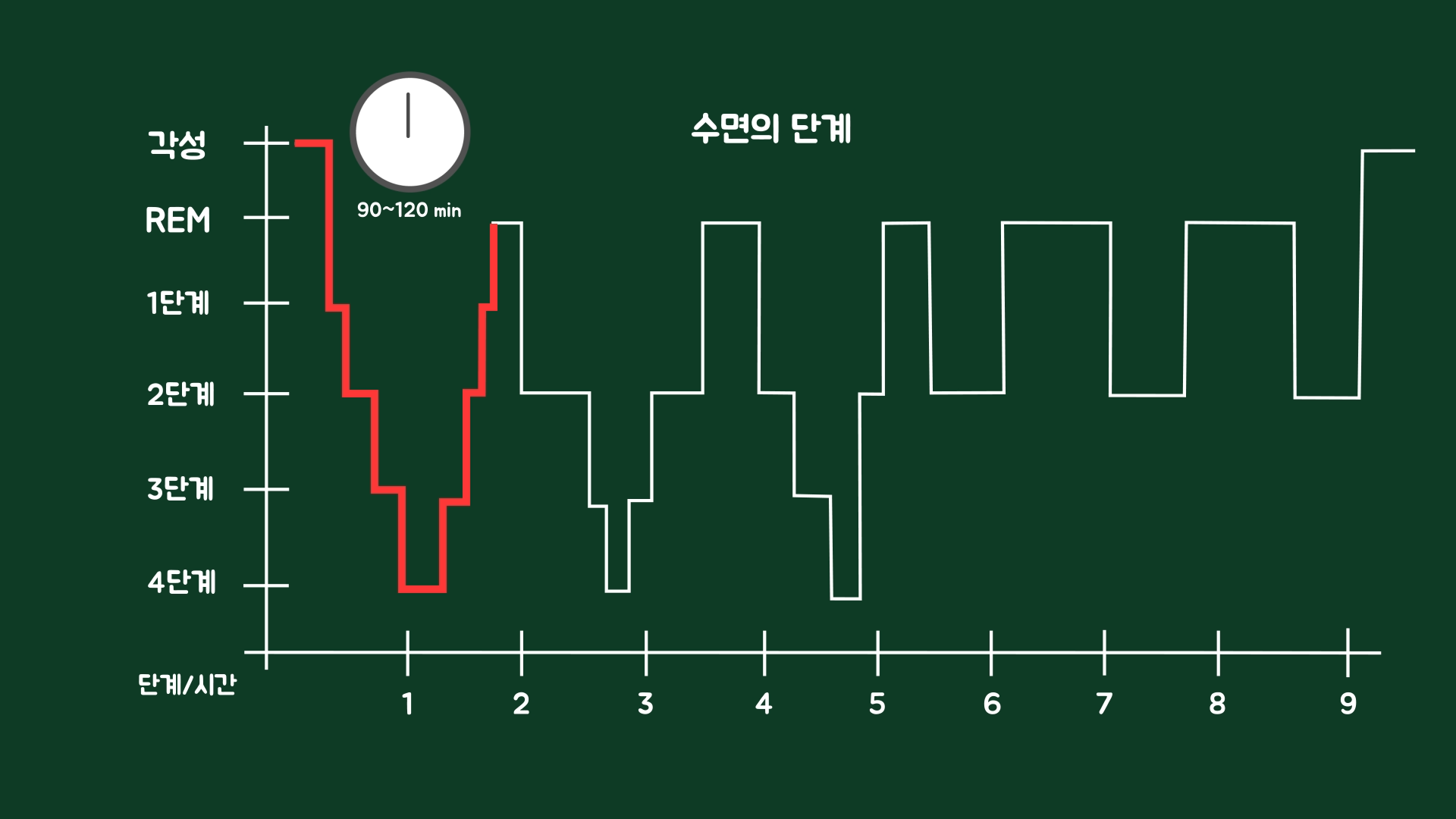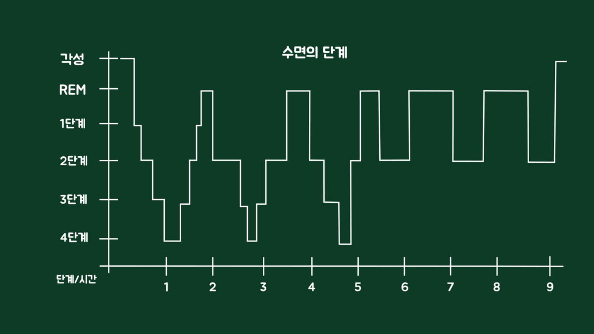 수면의 5단계를 한 번 완주하기 위해서는 약 90~120분의 시간이 필요합니다. 따라서 우리가 7~9시간 정도 잠을 잔다면 약 5~6번 정도 수면의 단계를 반복할 수 있습니다.