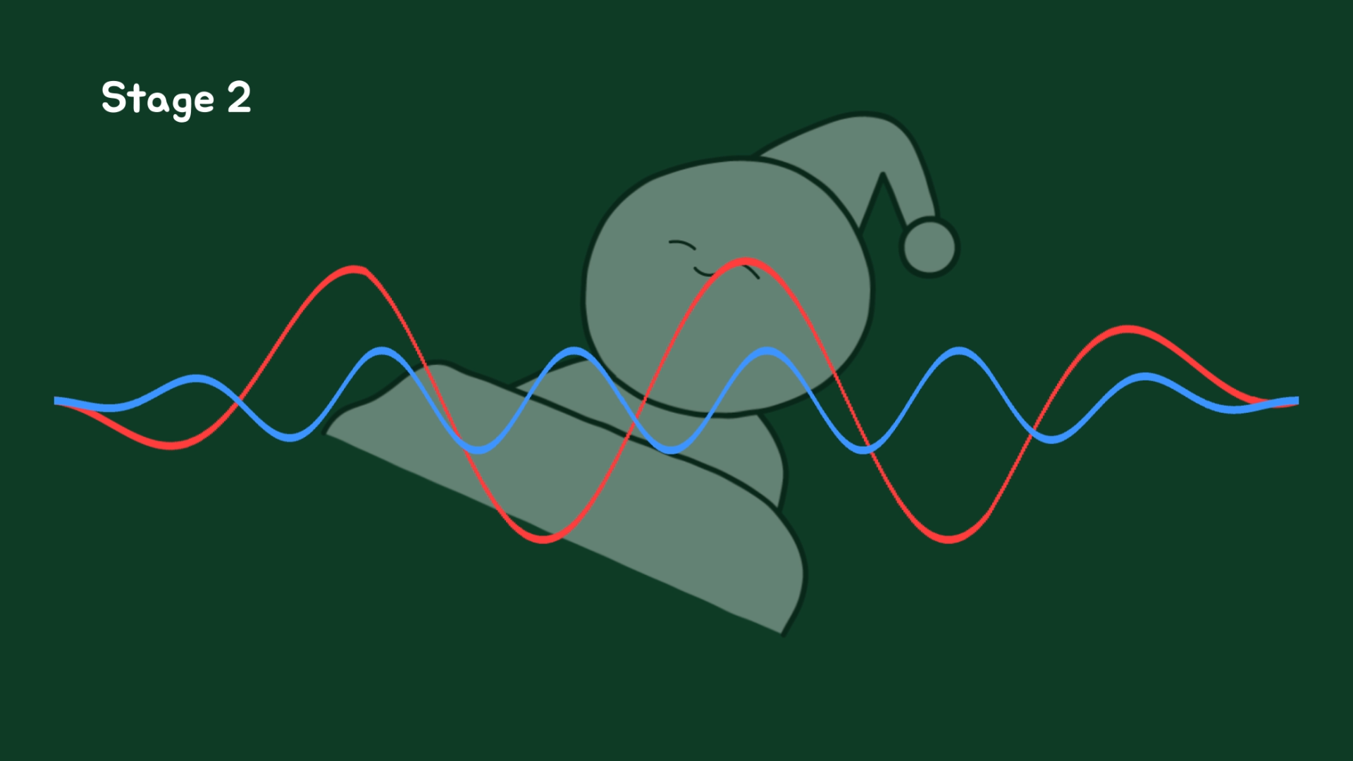 수면 1단계에서는 작은 소리에도 눈이 떠집니다. 이 상태에서 약 5분이 지나면 2단계로 진입하고, 2단계에서는 두 개의 뇌파가 확인됩니다.
