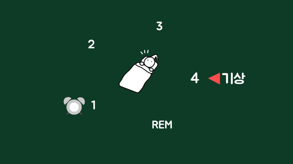 그런데 이런 수면의 단계는 우리가 일어날 시간에 맞춰서 유동적으로 작동하지 않습니다. 그래서 3~4단계의 수면 단계에서 알람이 울려서 깰 수도 있는데, 잠에서 깨기 힘든 숙면의 단계에서 억지로 잠을 깨면 극심한 피로를 느끼게 됩니다. 따라서 수면 1~2단계에서 잠을 깨는 게 좋습니다. 그런데 어떻게 수면 1~2단계에서 깰 수 있을까요?