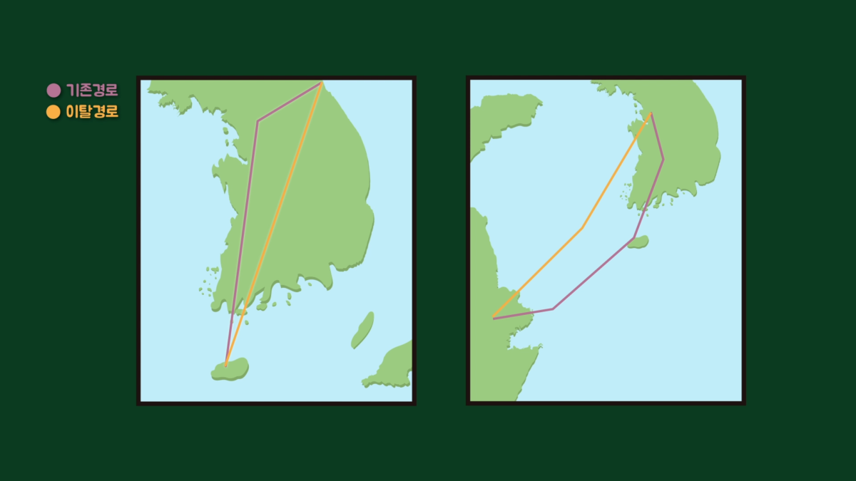 그렇다고 아예 비행이 불가한 건 아닙니다. 비행기는 목적지까지 최단 거리로 비행해야 유류와 탄소배출, 비행시간 등을 절감할 수 있습니다. 이를 위해 상황에 따라 항공교통본부가 국방부와 협의하여 항공로가 아닌 비행제한구역을 가로질러서 비행시키기도 합니다.