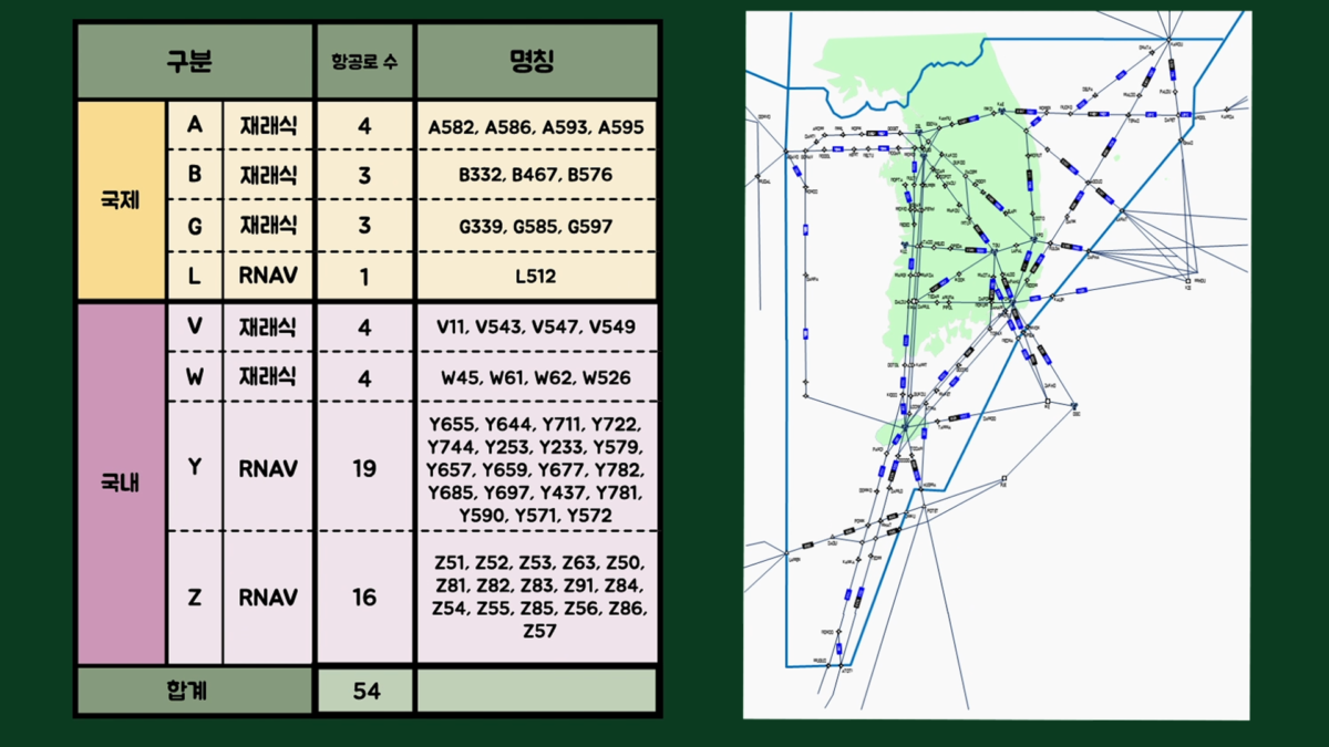 항공로는 항공교통본부가 만드는데, 아무렇게나 만드는 것이 아니라 일부 공역들을 피해서 만듭니다. 이 과정에서 출발지에서 목적지까지 일직선으로 가지 않는 경로가 종종 생깁니다.