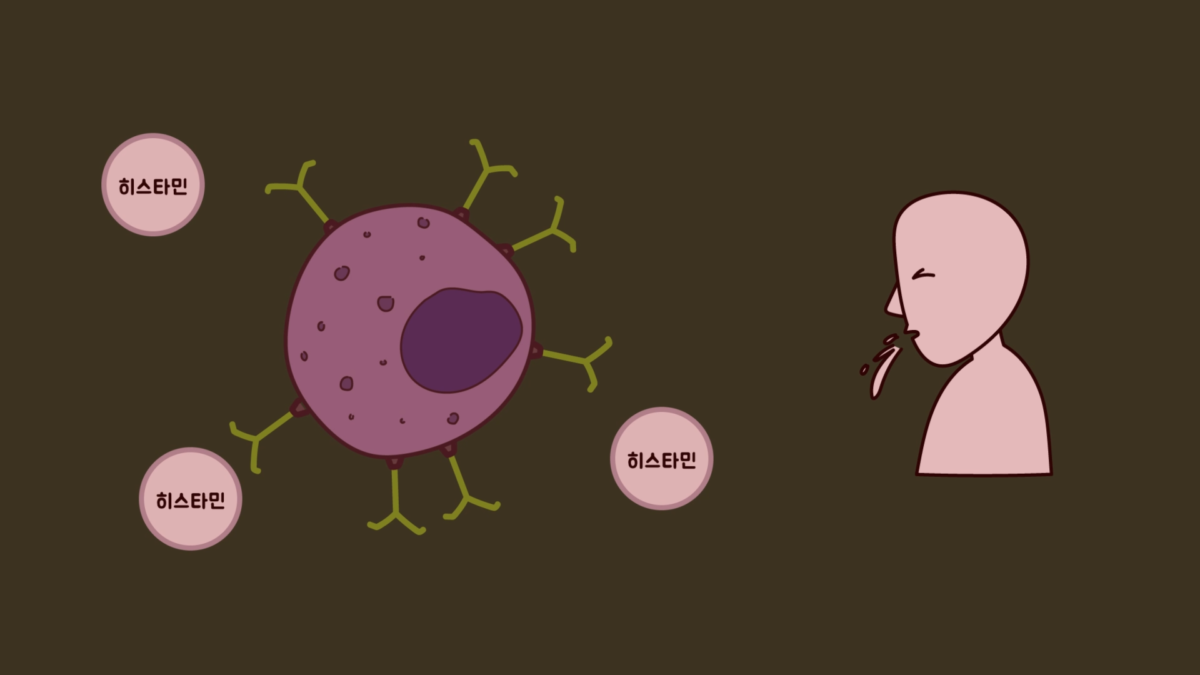 이때 비만 세포에서 히스타민을 분비하는 면역 반응이 나타나는데, 히스타민이 알레르기 작용을 유발하여 코와 기관지 점막에서 점액을 분비하게 하고, 땀, 위산, 침 등의 분비를 촉진합니다. 그리고 모세혈관을 확장하고 투과성을 증가시켜 더 많은 백혈구가 오도록 합니다. 이 과정에서 가려움증과 발적, 통증 등이 유발됩니다.