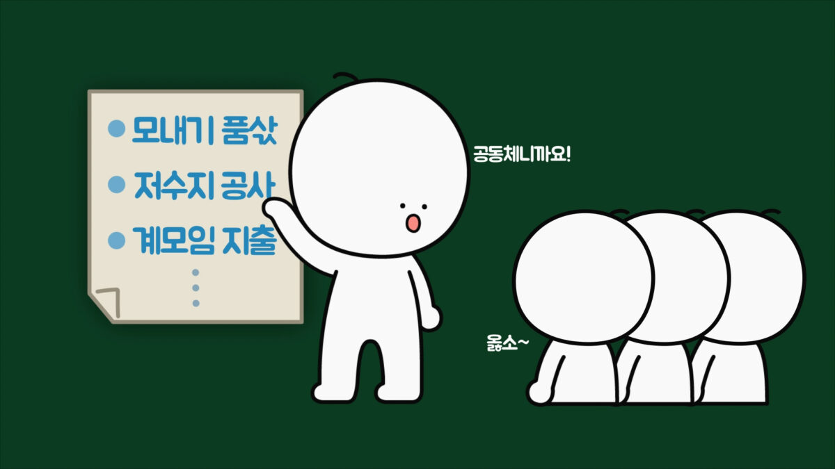 이 마을의 모든 사람은 대동회(大洞會)라는 공통 조직에 속했고, 직간접적으로 조직의 영향을 받았습니다. 대동회는 모내기 품삯, 저수지 공사 관련 사항, 마을 내 각 계 모임의 지출 등을 직접 결정하거나 영향을 미쳤는데, 이처럼 마을 구성원이 서로를 잘 알고 공동체 활동을 지속했기에 친하든 친하지 않든 서로의 사정을 잘 알고 부대껴 살 수밖에 없었습니다.