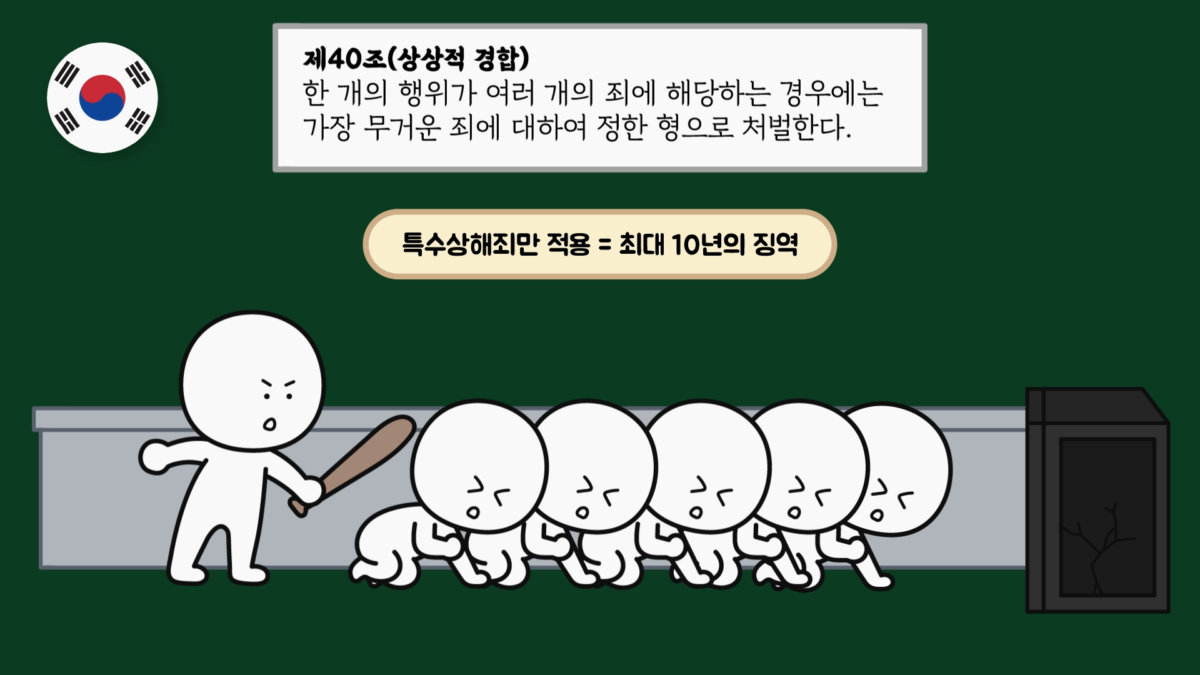 그리고 하나의 행위가 아니라 여러 행위로 여러 범죄를 저지르는 경우 우리나라는 가장 무거운 죄에서 정한 형의 상한과 그 상한의 절반까지 가중하여 처벌하는 가중주의를 취하고 있고, 미국은 각 죄에 해당하는 형을 모두 합산하는 병과주의를 취하고 있습니다.