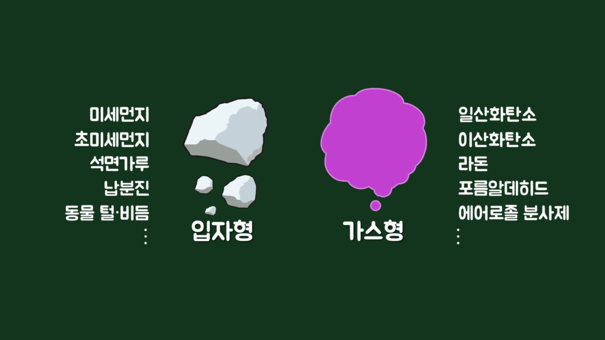 또 유해물질은 크게 입자형과 가스형으로 나누어지는데, 가스형 유해물질은 입자가 없어서 필터를 통해 걸러질 수 없고, 환기를 통해 밖으로 내보내는 것만이 유일한 해결 방법입니다.