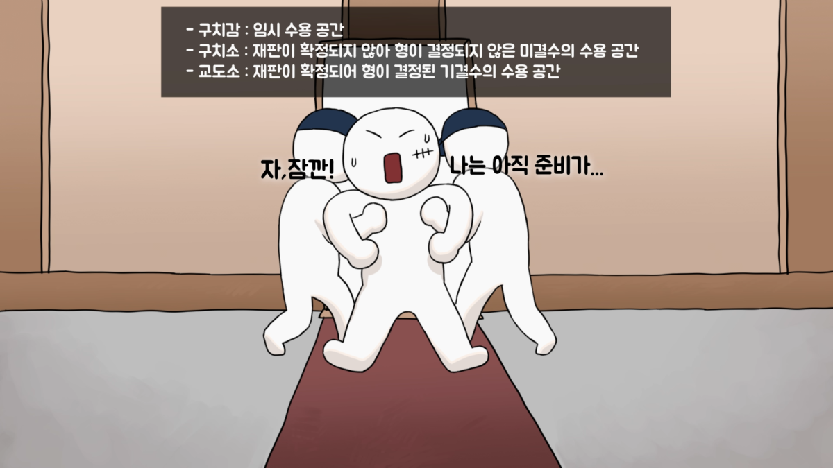 법정구속이 선고되면 그 즉시 사회로부터 격리되는 것이므로 경위들이 피고인을 법정 옆에 있는 문으로 끌고 나가 구치감으로 이동시킵니다. 그 곳에서 스마트폰이나 지갑 등 소지품을 제출받고, 몸 수색을 한 뒤 구속사실 통지서를 피고인이 지정한 사람에게 전달합니다.