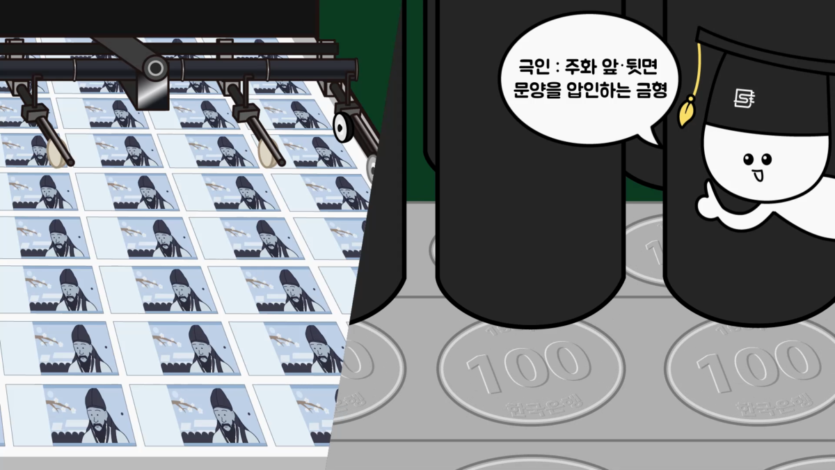 물론 주화에도 지폐처럼 기호와 번호 등 위조 방지 장치를 넣는 것이 안전한데, 주화는 지폐처럼 인쇄해서 제조하는 것이 아니라 도안이 새겨진 극인을 꾹 눌러 문양을 새기는 방식으로 제조합니다.