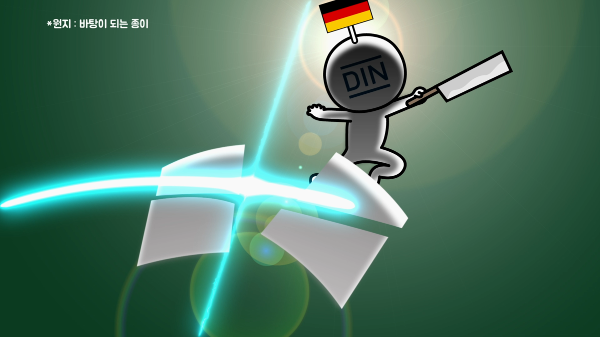 현재 사용하는 A4 용지 규격은 국제 종이 크기 표준(ISO 216)을 따른 것이고, DIN(독일 표준화 협회) 476 표준에 기반을 둡니다. DIN에서는 1922년 원지(바탕이 되는 종이)를 반으로 자르는 과정을 반복함에 따라 생기는 각 종이의 면적을 규격으로 정했습니다.