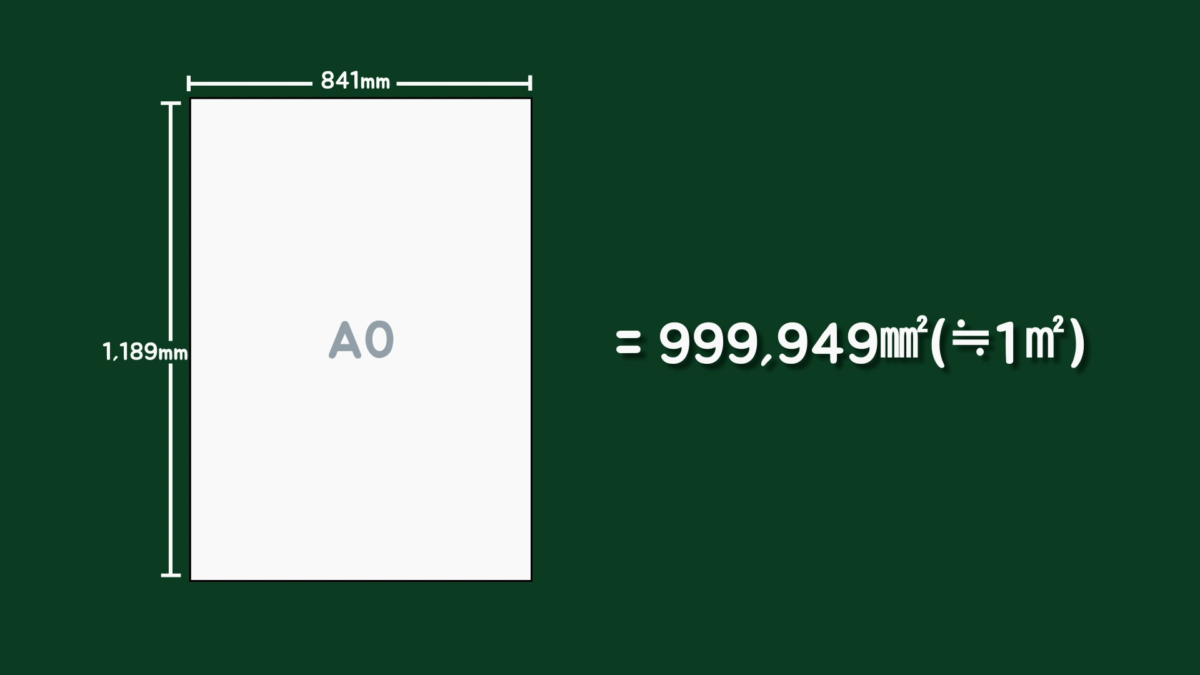 그러면 근본적인 의문이 생길 겁니다. A0 용지의 규격은 어떻게 정해진 걸까요? A0 용지는 1:1.414 비율의 직사각형 면적이 1㎡가 될 때를 규격으로 정했습니다.