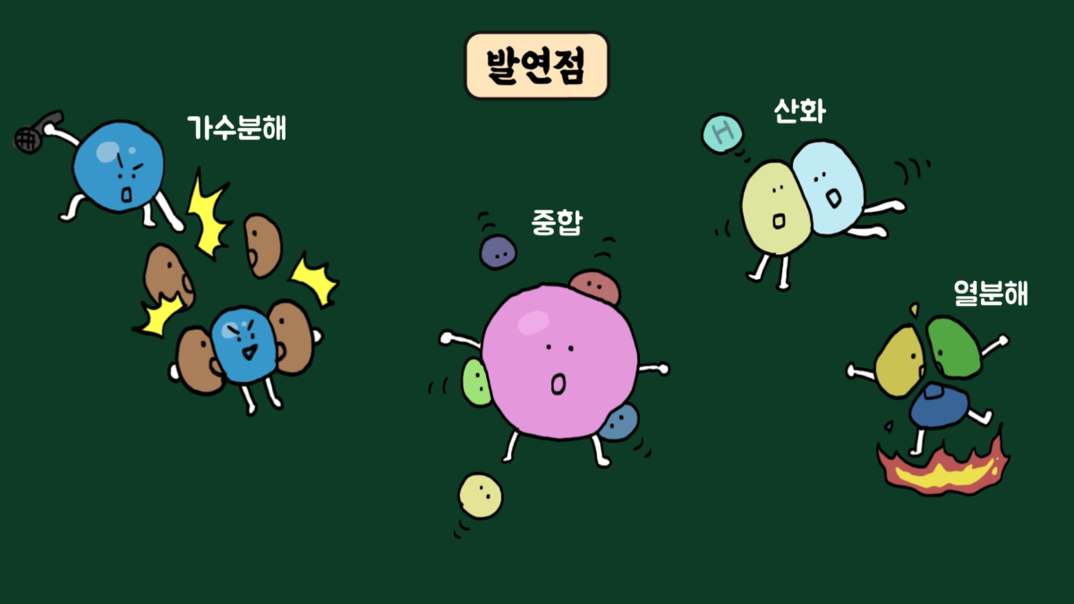 그렇다면 발연점에서 어떤 현상에 의해 독성 물질이 만들어지는 걸까요? 발연점에서는 뜨거운 기름과 공기 중의 산소, 수증기 등이 활발히 화학반응을 합니다. 이때 일어나는 주된 반응은 가수분해·중합·산화·열분해 등이 있고, 이런 반응의 결과로 휘발성 유기화합물(VOCs, Volatile Organic Compounds)이 다량 발생합니다.