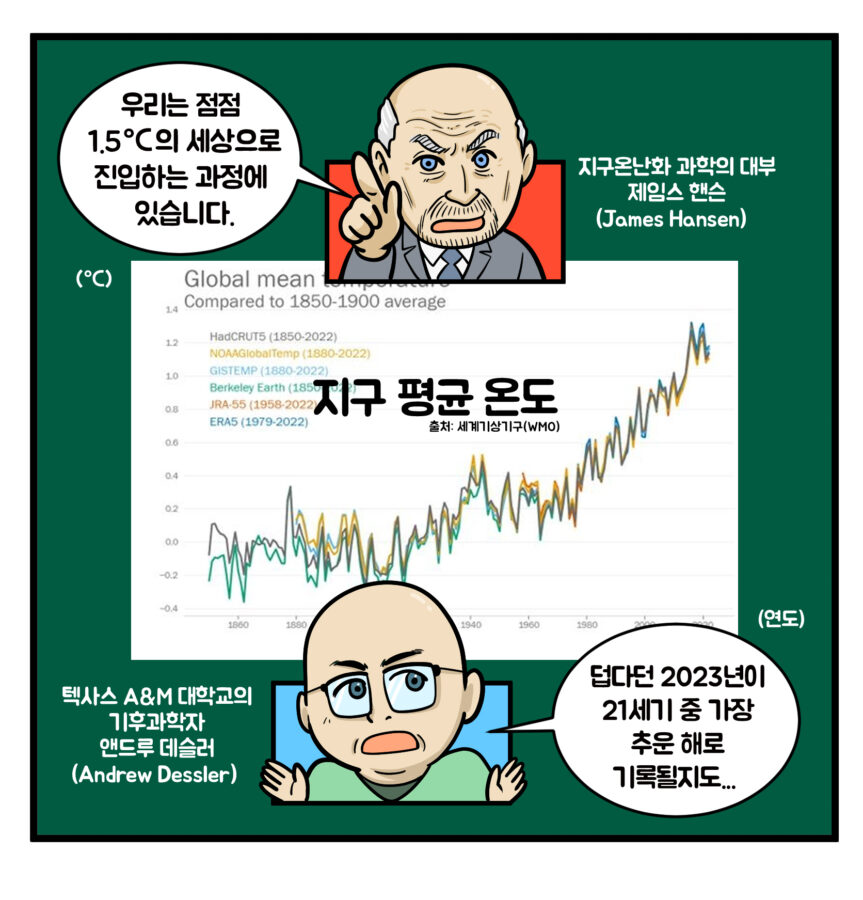 매년 여름마다 역대급으로 덥다는 뉴스 기사를 볼 수 있습니다. 실제 지구의 평균 온도 추이를 보면 지속해서 상승하고 있고, 앞으로 5년 안에 지구온난화의 마지노선이라고 알려진 섭씨 1.5도(*위험한 변화가 일어날 리스크를 억제하기 위해 국제적으로 합의한 한계치)도 넘을 것으로 전망한다고 합니다. 그런데 이렇게 계속 더워지면 어떤 일이 발생하는 걸까요?