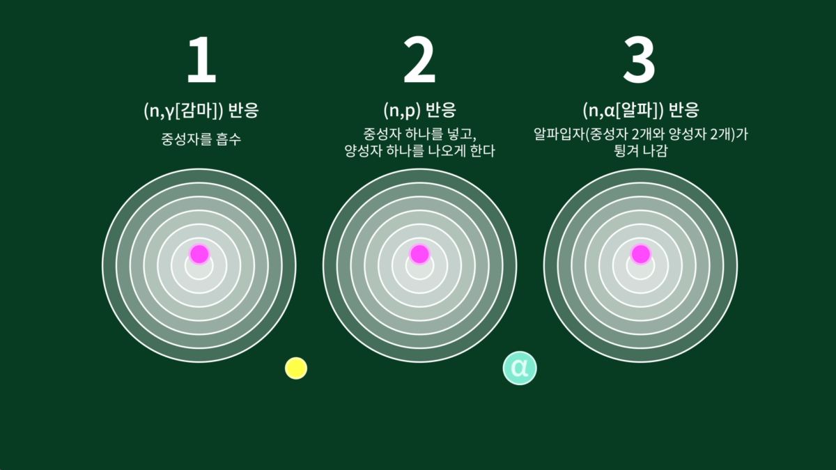나타나는 반응들은 간략히 보면 위와 같고, 이중 두 번째(n,p) 반응을 활용하면 금(Au)을 만들 수 있는데, 수은(Hg)에 중성자를 강하게 충돌시켜서 수은 핵의 양성자 하나가 나오게 하면 됩니다.
