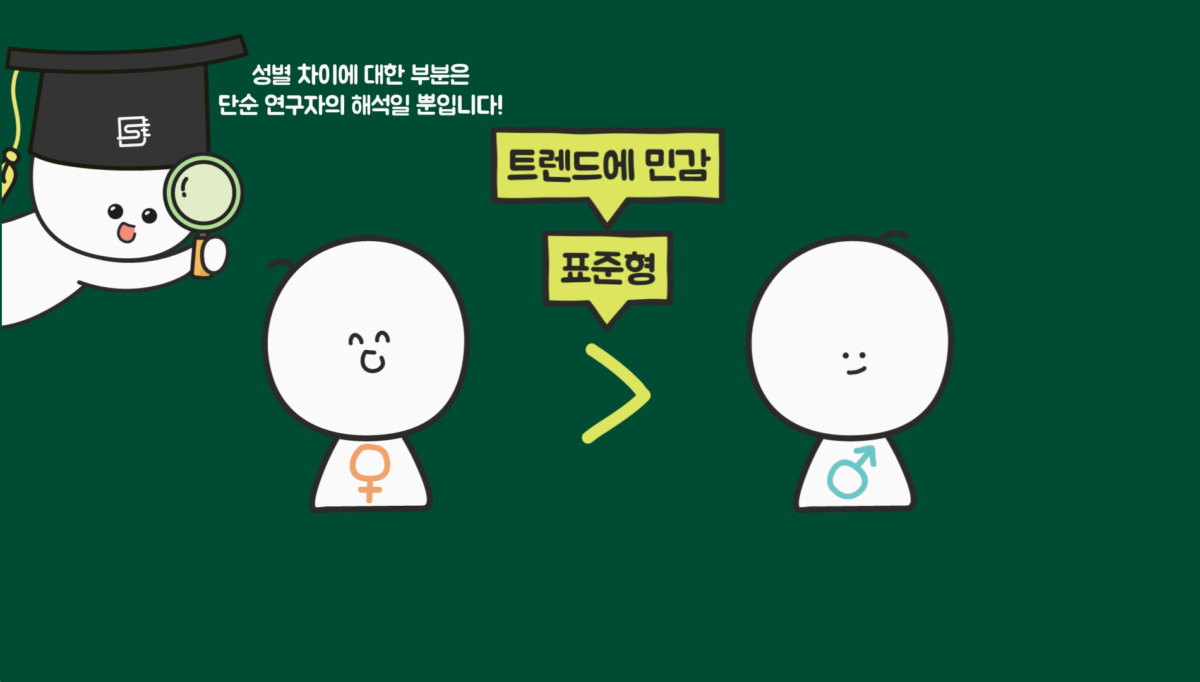 일부 선행 연구에 따르면 여성은 남성보다 표준형을 더 선호하고, 새로운 언어 표현과 사회적 트렌드를 빠르게 받아들이는 경향이 있다고 합니다. 이를 참고해서 해석해봤을 때 친근감을 나타낼 수 있는 ‘여기요’의 사용을 조금 더 빠르게 하기 시작했을 것으로 추정합니다.