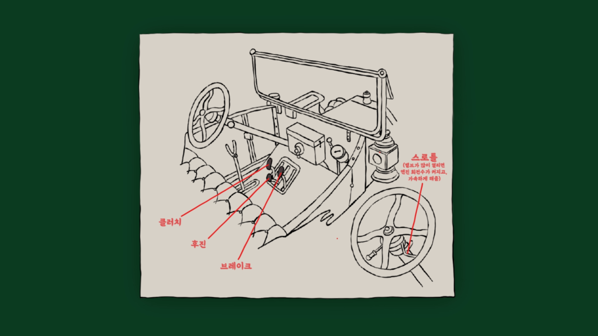 페달에 대한 논의는 1900년대에 들어서야 나왔는데, 차량을 정확하게 조향하고 변속하기 위해서는 양손이 필요하다는 생각 때문입니다. 그렇게 등장한 페달은 제조사마다 배열이 제각각이었습니다.