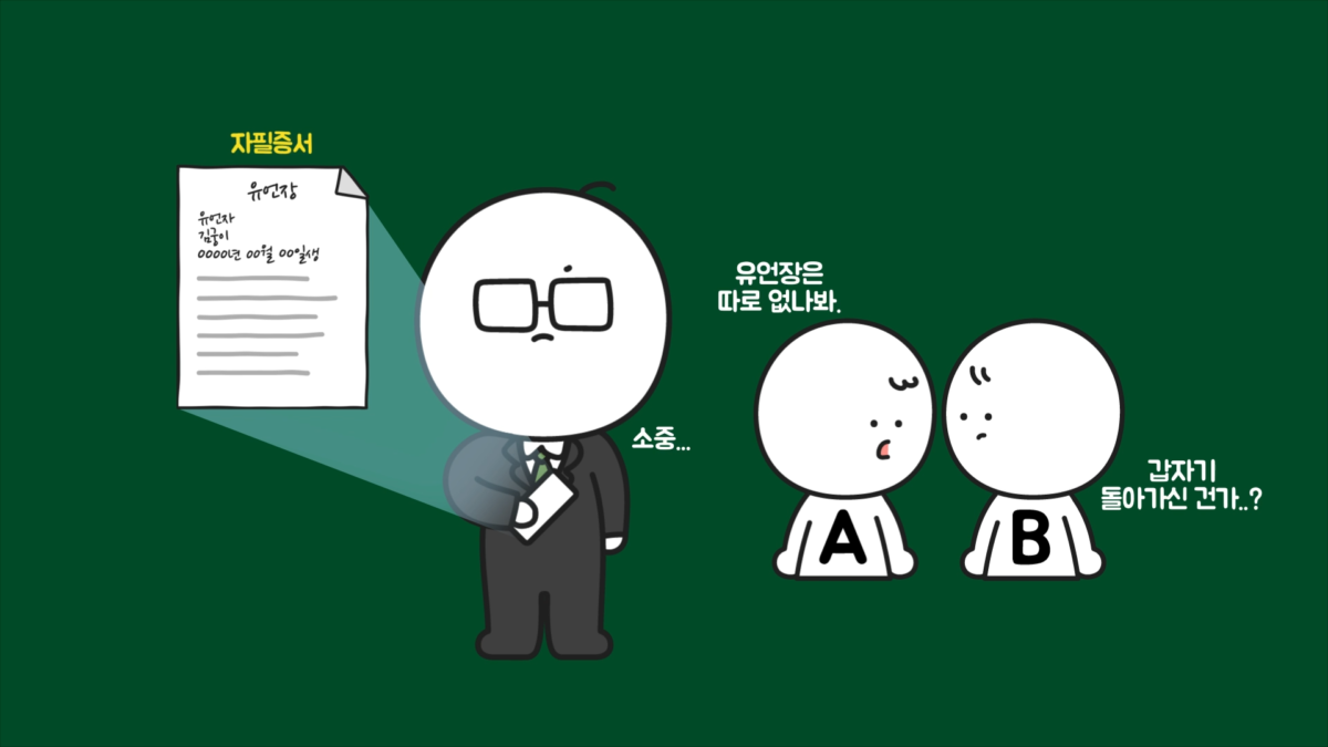 나머지 유언 방법도 정해진 절차에 따라서 진행하면 되고, 다시 드라마 얘기로 돌아와서 보통 변호사들이 종이로 된 유언장을 읽는 모습을 봤을 때 자필증서 혹은 공정증서 형식의 유언장일 가능성이 매우 큽니다.