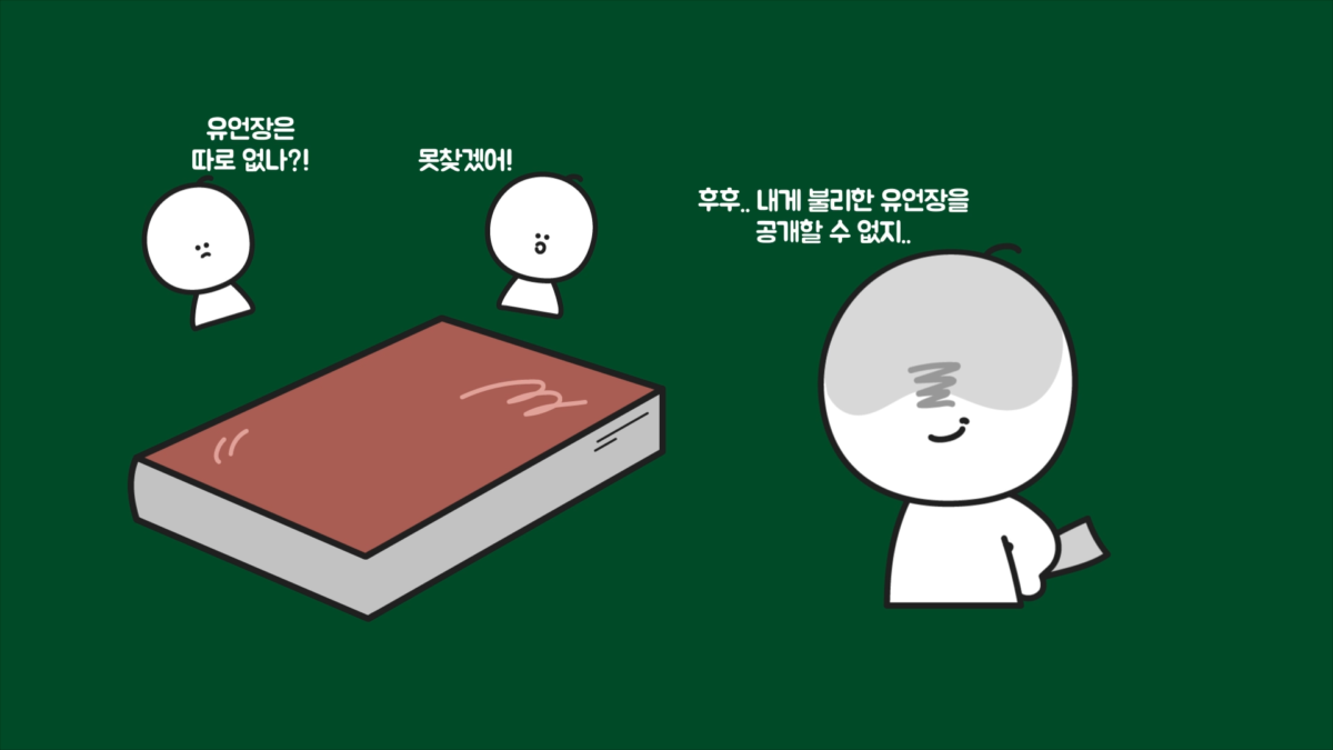 물론 그럴 일은 사실상 없겠으나 드라마 상황에 이입해서 유언장 내용대로 집행할 시 전혀 상속받지 못하는 법정 상속인이 이 사실을 알 때 유언장만 없애면 법정 상속분을 받을 수 있으니 어떻게든 없애거나 변호사가 발표하지 못하도록 해야 할 겁니다.