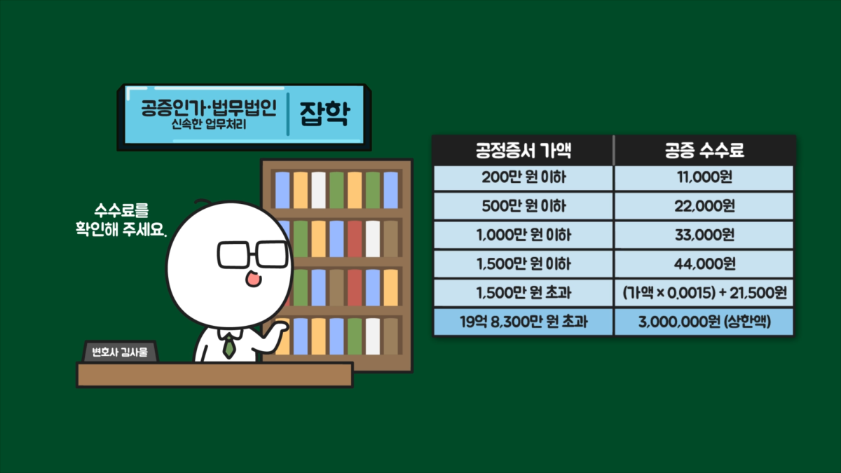 원본은 공증 변호사가 보관하고 있으므로 분실 위험성은 없으나 공정증서 가액에 따라 수수료가 최대 300만 원까지 발생할 수 있습니다.